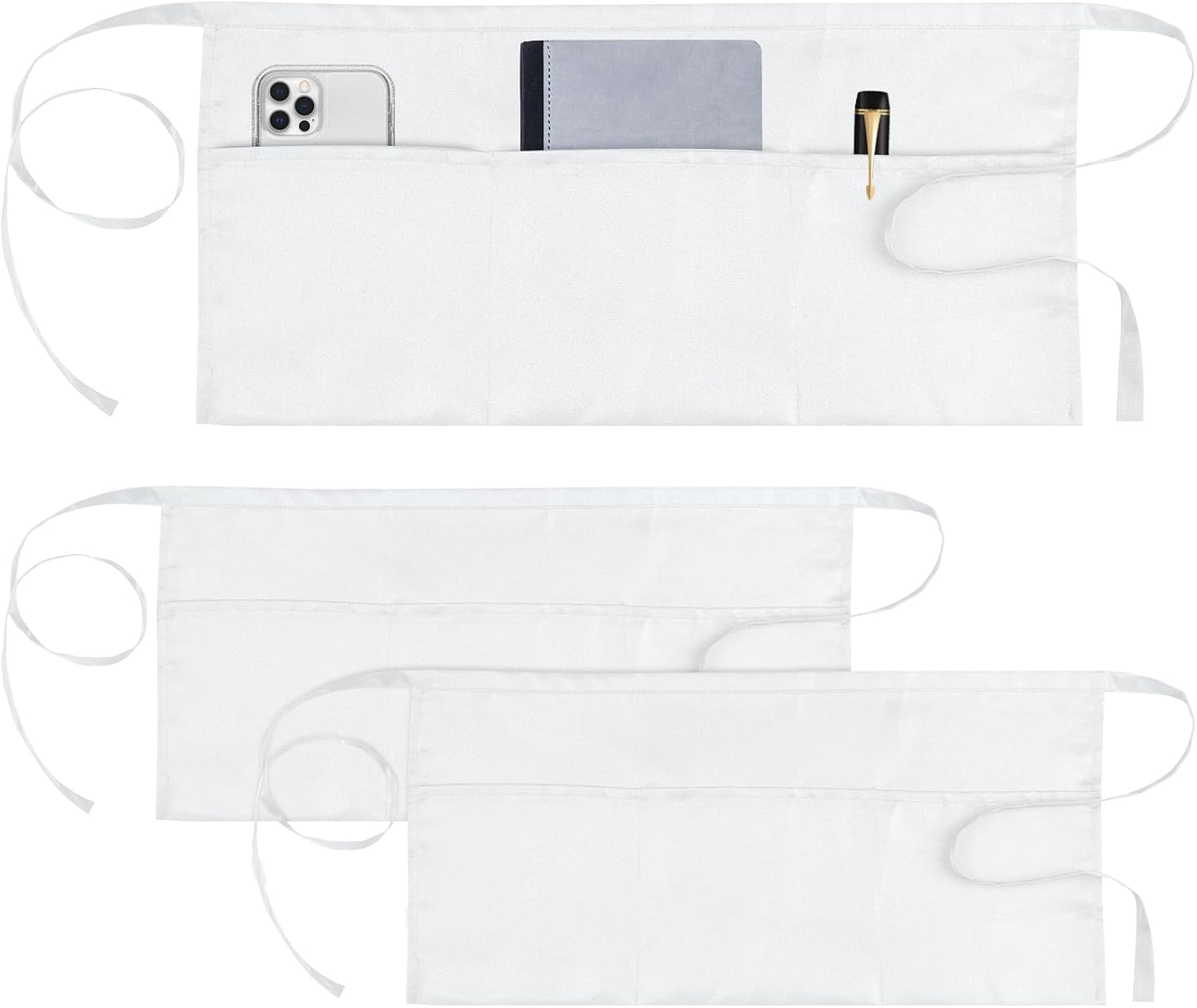 • 3 Pack of Server Apron: you will receive 3 packs of waist apron, size 11.4 x 23.7 inches, providing plenty of coverage area, which can easily match different styles and scenarios of workwear